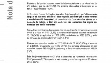 Marzo registra 35.988 desempleados mas