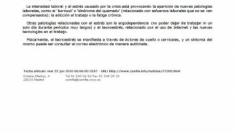 La intensidad laboral y el estrés causado por la crisis está provocando la aparición de nuevas patologías laborales, como el ‘burnout’ o ‘síndrome del quemado’ (relacionado con esfuerzos laborales que no se ven compensados); la adicción al trabajo o la fatiga crónica.