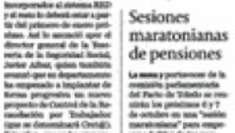 Díaz Ferrán, que someterá previamente sus propuestas al comité ejecutivo, planteará revisar el Pacto de Toledo. En ese sentido, solicitará que se alargue la edad de jubilación, así como los años de contribución para calcular la cuantía de la pensión. El documento elaborado por la cúpula de la patronal no determina los años de ampliación; pero todo indica que respalda el proyecto del Gobierno de elevar la jubilación a los 67 años y el periodo de contribución a los últimos 20. Asimismo, la organización está a favor de la separación de fuentes de la Seguridad Social y de un tratamiento fiscal más adecuado para las pensiones privadas.