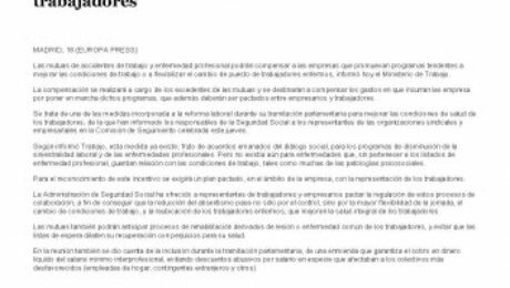 Las mutuas compensaran a las empresas que pacten mejoras para la salud de los trabajadores