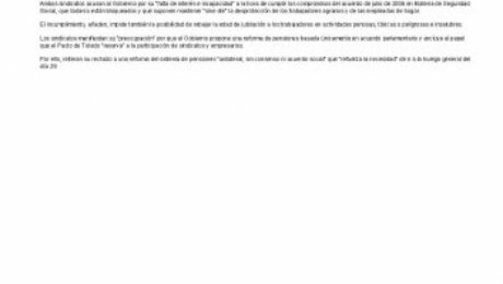 Por ello, reiteran su rechazo a una reforma del sistema de pensiones "unilateral, sin consenso ni acuerdo social" que "refuerza la necesidad" de ir a la huelga general del día 29.