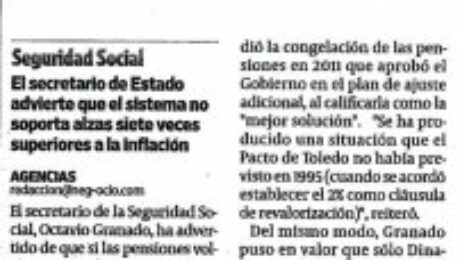 El Gobierno alerta de subidas de las pensiones por encima de la inflacion