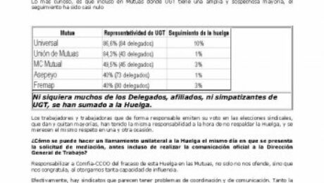 Lo más curioso, es que incluso en Mutuas donde UGT tiene una amplia y sospechosa mayoría, el seguimiento ha sido casi nulo