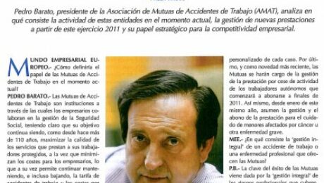 Pedro Barato, presidente de la Asociacion de Mutuas de Accidentes de Trabajo (AMAT), analiza en que consiste la actividad de estas entidades en el momento actual, la gestion de nuevas prestaciones a partir de este ejercicio 2011 y su papel estrategico para la competitividad empresarial.