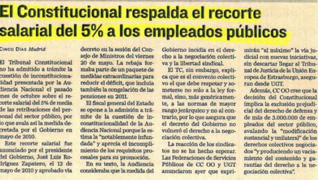 El Constitucional respalda el recorte salarial del 5% a los empleados publicos.