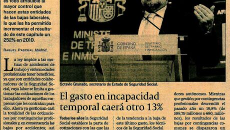 Todos los años la Seguridad Social establece la parte de cotizaciones sociales con que las mutuas de accidente de trabajo y enfermedad profesional financian la prestación económica por incapacidad temporal derivada de contingencias comunes. A principios de año se estableció que el coeficiente que se debía aplicar sobre la cuota íntegra era del 0,060. La Orden publicada en el BOE reduce el coeficiente al 0,050.