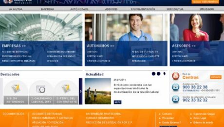 La web se departamenta en siete grandes áreas: información propia de la mutua, empresas, autónomos, asesores, documentación, ServiMutua y Actualidad Mutua.