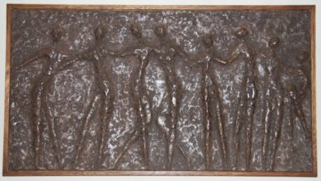 La exposición la conforman Cinco Bajorrelieves realizados en materia de investigación con polvos metálicos, polímeros y su reacción ante determinados ácidos.