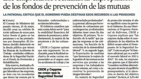 Los empresarios rechazan la -expropiacion- de los fondos de prevencion de las mutuas.
