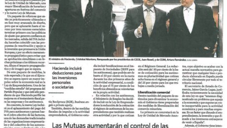 Por su parte, la ministra de Empleo y Seguridad Social, Fátima Báñez, anunció ayer que la nueva Ley de emprendedores incluirá una reducción de hasta el 50% en la cotización de los autónomos que se encuentran dados de alta de forma simultánea en el Régimen General de la Seguridad Social y en el Régimen Especial de Trabajadores Autónomos (RETA).