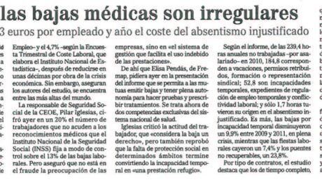 Adecco ha presentado un informe sobre absentismo realizado en colaboración con el IESE, Garrigues, Fremap y la universidad Carlos III de Madrid que ha analizado las bajas laborales entre 1970 y 2010 en España, Suiza, Finlandia, Dinamarca, Australia, Canadá y EE.UU. La conclusión principal es que nuestro país mantiene un elevado nivel de absentismo laboral.