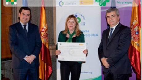 D Concepcion Ortiz, directora de RSC de Fraternidad Muprespa, fue la encargada de representar a la entidad en el acto que organizo la Fundacion Diversidad, recibiendo de manos del Secretario de Estado de Servicios Sociales e Igualdad, D. Juan Manuel Moreno, y del presidente de la Fundacion Diversidad, D. Javier Benavente, el certificado de empresa firmante.