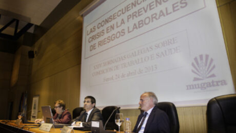 MUGATRA participo con una ponencia de su Director Tecnico, Jose Acuna Vilas sobre Las consecuencias de la crisis en la prevencion de riesgos laborales. Ademas se trataron temas como las contingencias profesionales y la prevencion en el trabajo autonomo, empleo y proteccion por desempleo, el plan de actividades del ISSGA para el 2013, sostenibilidad y crisis: riesgo de exclusion social, etc. Se trata de que los medios legales, tecnicos, medicos y humanos se adapten a las nuevas exigencias de la sociedad actual.