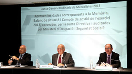 Los resultados han sido presentados hoy durante la Junta General Ordinaria de Mutualistas, encabezadas por Alexandre Blasi, presidente de la entidad, a quien acompanaban Enric Gonzalez, director general, y Angel Dutras, secretario en funciones. Durante el acto, celebrado en la sede de Mutua Intercomarcal en Barcelona, Gonzalez ha remarcado la importancia de los resultados en un entorno economico marcado por la crisis y ha destacado que el objetivo de la entidad es mantener los valores que han hecho grande la Mutua: eficacia, proximidad, excelencia, profesionalidad y servicio. Solo asi seremos capaces de encontrar nuevas oportunidades de progreso. Ademas, enfatiza que los resultados logrados se deben al esfuerzo de la entidad y el de sus trabajadores.
