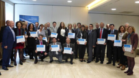 Para ello se ha contado con la presencia de Rafael Antonio Barbera, director general de la Direccion General de Ordenacion de la Seguridad Social, M. Lourdes Melendez, subdirectora general de Entidades Colaboradoras con la Seguridad Social, Angel Jurado, director general de Trabajo de la Comunidad de Madrid y gerente del Instituto Regional de Seguridad y Salud en el Trabajo e Isabel Pemau, secretaria general del Instituto Regional de Seguridad y Salud en el Trabajo, que han hecho entrega de los certificados. Por parte de Asepeyo han asistido Vicente Aparicio, director gerente, Miguel Bernal, director territorial Centro, y Norberto Afonso, director territorial Seguridad e Higiene.