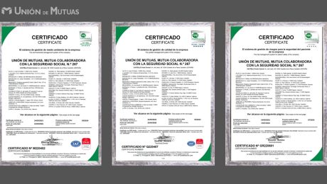 Unión de Mutuas mantiene su compromiso constante y decidido con la calidad del servicio como elemento clave que le permite renovar los certificados de calidad conforme la ISO 9001 de calidad, ISO 14001 de medioambiente y UNE 179003 de seguridad de pacientes.