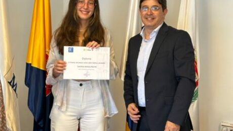 Carolina Amieva Martel, de 16 años y estudiante de 4º de la ESO en el IES Guanarteme de Las Palmas de Gran Canaria (Gran Canaria), recibió hoy de manos del director-gerente de la Mutua de Accidentes de Canarias, Javier González Ortiz, el premio como ganadora del VI Concurso de relatos cortos sobre hábitos saludables organizado por MAC en colaboración con TITSA. “Te perdono” es el título del trabajo ganador, seleccionado por el departamento de Comunicación y RSC de MAC.