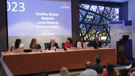 En la Junta General Extraordinaria, celebrada el mismo día, Urtsa Errazti, presidente de Mutualia, ha agradecido en su intervención el esfuerzo realizado por su Junta Directiva para establecer un sistema avanzado de gobernanza, recordando que todo el sistema es coherente con el propósito de Mutualia, que es el de garantizar el derecho a la salud, seguridad y bienestar de las personas, en colaboración con la Seguridad Social. Por su parte, Ignacio Lekunberri, director gerente de Mutualia, ha destacado el incremento del número de días de baja por trabajador en Euskadi, lo que en su opinión “merece una reflexión serena pero urgente de todos los agentes implicados”. En este sentido, ha anunciado que ya se están dando pasos para solucionar este problema y se ha mostrado esperanzado con la obtención de resultados, al menos, a medio plazo.