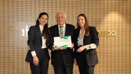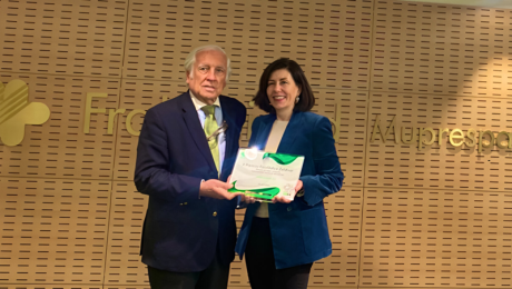 María Gómez Ormazabal y Ainhoa Mendiola Zapirain, de su departamento de marketing y comunicación corporativa, recibieron el galardón de manos de Carlos Espinosa de los Monteros, presidente de Fraternidad-Muprespa, en un acto de entrega que tuvo lugar en el Hospital Fraternidad-Muprespa Habana el 23 de abril.