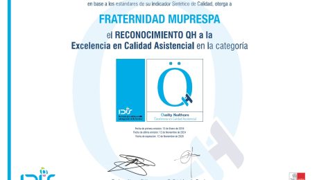 Fraternidad-Muprespa ha renovado su acreditación QH 2 estrellas, otorgada en 2018 por el Instituto para el Desarrollo e Integración de la Sanidad (Fundación IDIS) con el fin de reconocer la excelencia en la calidad asistencial de las organizaciones sanitarias. En el año 2016 la Mutua consiguió la acreditación QH+1 estrella.