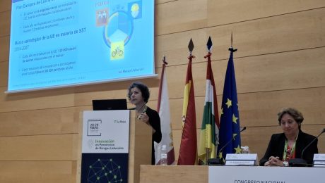 Montserrat Vega Castillo, técnica de prevención y especialista en higiene industrial del departamento de I+D de Mutua Universal, ha intervenido como ponente en la Mesa «Cáncer y trabajo», donde ha explicado los últimos cambios legislativos en materia de agentes cancerígenos y su adaptación en la empresa. Por su parte, Jose Antonio Tomás, técnico de prevención del Laboratorio de Ergonomía de Mutua Universal, ha participado como ponente en la Mesa «Innovación en Ergonomía», compartiendo las claves para la correcta implementación de un exoesqueleto en el ámbito laboral.