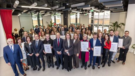 Antolín Sanz Pérez, director de Relaciones Institucionales de Mutua Universal; Bárbara Reina, directora de Responsabilidad Social Corporativa de la entidad; y Mónica Macias, técnica de RSC de Mutua Universal, han sido las personas encargadas de recoger la distinción «Madrid Excelente – Lugar Ciberseguro» durante un acto celebrado en Centro de Innovación Digitaliza Madrid que ha contado con la participación del viceconsejero de Digitalización de la Comunidad de Madrid, Manuel Pérez; la directora general de Madrid Excelente, Elena Mantilla García; el consejero delegado de la Agencia de Ciberseguridad, Alejandro de las Heras; y la viceconsejera de Economía y Empleo, doña Macarena Tejera.