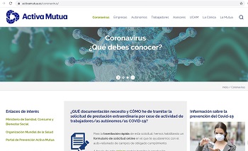 También es importante reseñar el notorio esfuerzo tecnológico y telemático desarrollado y aplicado por Activa Mutua para materializar todo un entorno web en su portal de internet: www.activamutua.es, desde donde mantener informados a sus empresas mutualistas, colaboradores y la sociedad en general, de todas y cada una de las novedades que minuto a minuto, día a día, se van produciendo en relación con el coronavirus, ya sea desde la vertiente médica, preventiva, administrativa o legislativa.