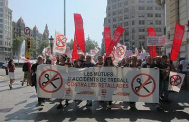 Un centenar de trabajadores de mutuas de accidentes cortan el trafico en Barcelona contra los recortes