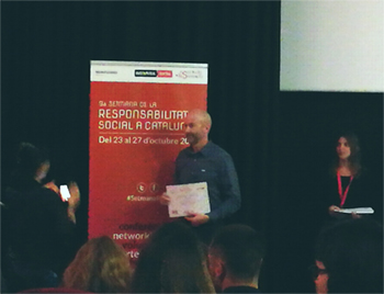 El certificado fue recogido en Barcelona por el jefe del Departamento de Responsabilidad Social (RS) y Calidad de Activa Mutua, Juan Carlos Gavilán, en la Filmoteca de Cataluña, dentro del marco de las actividades organizadas con motivo de la “IX Semana de Responsabilidad Social en Cataluña” (los pasados 23 al 27 de octubre). Activa Mutua también participó en dos mesas redondas, una en Barcelona y otra en Girona donde explicó el proceso de integración de la Responsabilidad Social en la estrategia de la empresa y abordó la responsabilidad social corporativa en el sector salud.