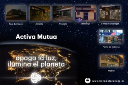 Activa Mutua se sumo el sabado 25 de marzo de 20.30 a 21.30 hrs. a la iniciativa La Hora del Planeta, promovida por el Fondo Mundial para la Naturaleza (WWF). Bajo el lema, El planeta primero. Que nadie te pare, alerta ante la necesidad de incorporar soluciones sostenibles en los procesos de produccion, gestion de recursos, asi como medidas de eficiencia energetica en las instalaciones de las empresas. Bien es cierto que los clientes son cada vez mas exigentes con sus marcas favoritas y estas deben dar respuesta a las demandas de unos consumidores cada vez mas responsables.
