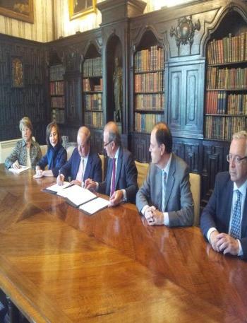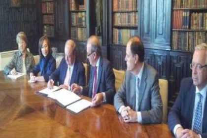 D. Mariano de Diego, Presidente de FREMAP y D. Joaquin Gay de Montella , Presidente de FOMENT del TREBALL NACIONAL suscribieron el acuerdo de colaboracion que permitira a los trabajadores accidentados de la Mutua disponer de una amplia propuesta formativa en Barcelona, adaptada especificamente a sus necesidades para reincorporarse al entorno laboral.