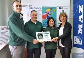 MAZ, mutua colaboradora con la seguridad social n 11, ha hecho entrega del Bonus 2013 a Anvis. Con ello, se reconocen las mejoras que ha realizado la empresa en el ambito de la prevencion de riesgos laborales.