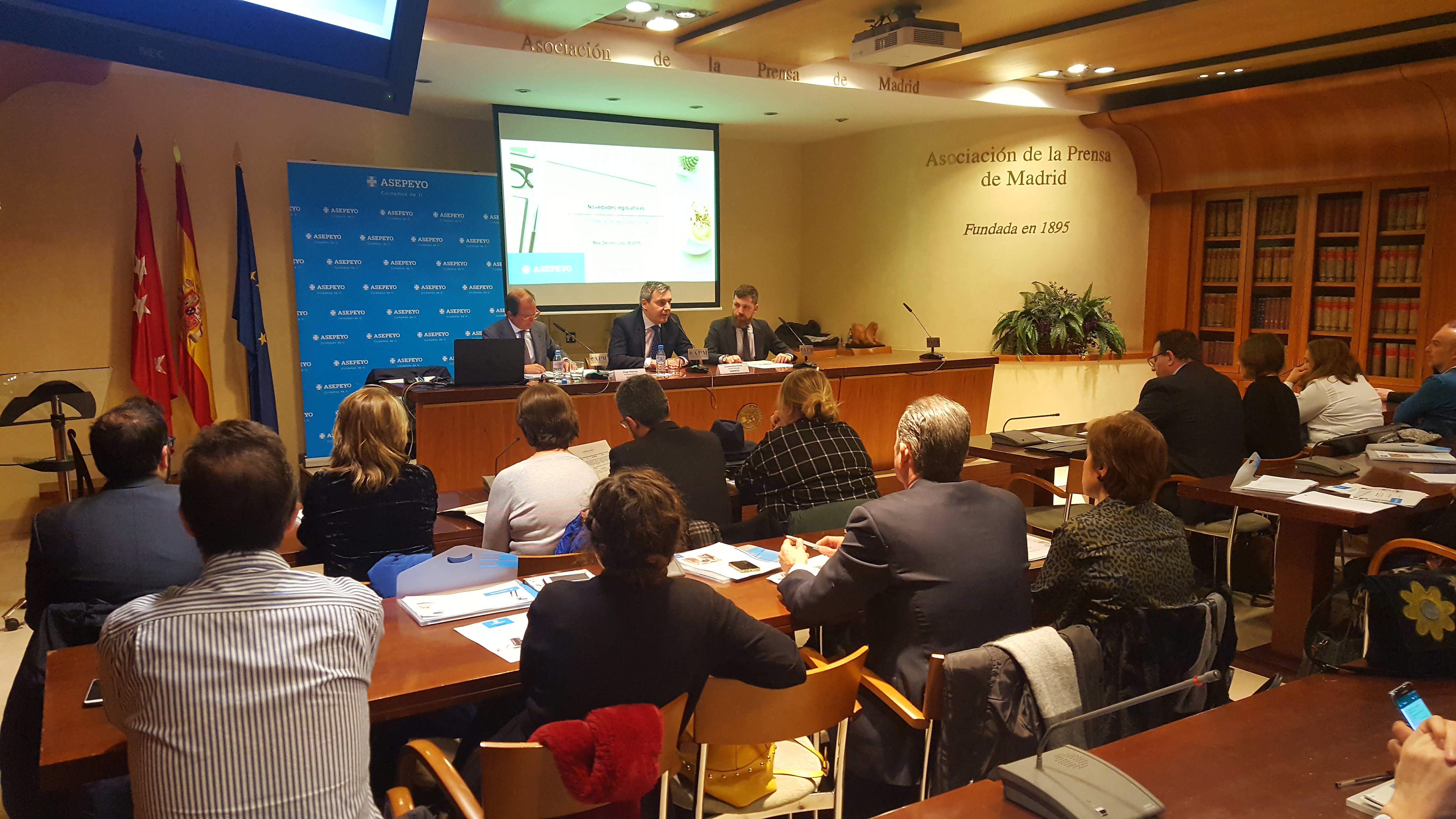 La jornada ha sido presentada por Constantino Perea, director territorial de Asepeyo, en la Asociación de la Prensa de Madrid.