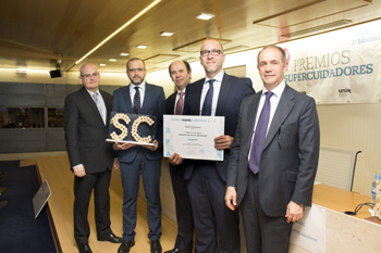 Juan Luis Arriazu y Pedro Aguilera, director autonomico de Asepeyo en Aragon y La Rioja y director del centro asistencial de Asepeyo en Logrono, respectivamente, han recogido el premio en nombre de de la Mutua durante un acto que ha tenido lugar hoy en el Salon de Actos de los Servicios Centrales del Imserso, y que ha sido presidido por Cesar Anton, director general del Imserso y Aurelio Lopez-Barajas, consejero delegado de SUPER Cuidadores.