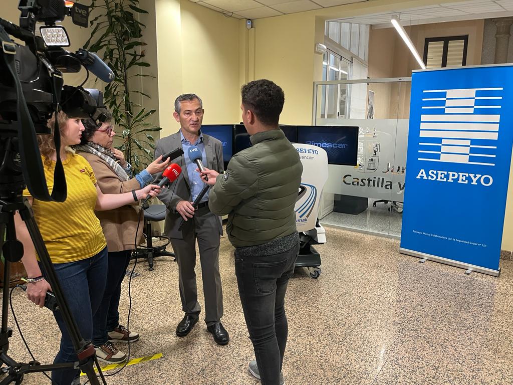 Asepeyo ha participado en esta jornada con la instalación de un simulador de conducción de alta inmersión, en el que los asistentes, de la mano de Javier Piñuela de la Mata, consultor de Prevención de Riesgos Laborales de Asepeyo en Segovia, han podido experimentar todo tipo de situaciones al volante sin estar realmente expuestos a ningún tipo de riesgo.