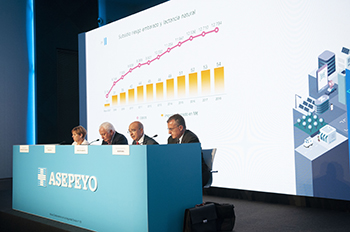 Asepeyo ha presentado los resultados del ejercicio 2018 en su Junta General Ordinaria de Mutualistas. La Mutua ha cerrado el ejercicio con unos ingresos de 2.294,60 millones de euros, un 3,07 % más que en el 2017, y con un resultado económico de 73,3 millones de euros. Asepeyo aporta 58,34 millones de euros a las cuentas y fondos de la Seguridad Social y el resto a dotación de reservas.