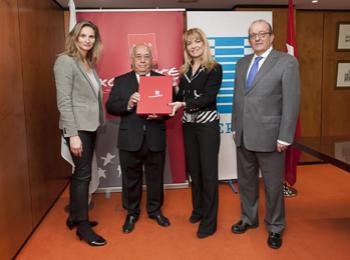 La directora general de Madrid Excelente, Alejandra Polacci, y la directora general de Ordenacion e Inspeccion de la Consejeria de Sanidad de la Comunidad de Madrid, Paloma Martin, han entregado al presidente del Consejo Regional de Asepeyo en Madrid, Jose Luis Martinez Olivares, y al subdirector general de Asepeyo, Antonio Mur, la placa conmemorativa que acredita la obtencion del sello Madrid Excelente, lo que certifica que la Mutua cumple con los estandares de calidad exigidos en el modelo Madrid Excelente relativos a la excelencia, la responsabilidad social y la confianza de los clientes.