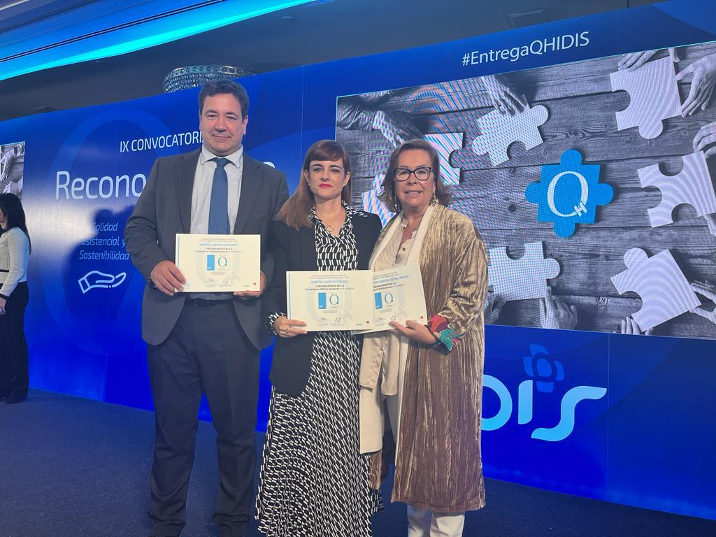 La entrega de las certificaciones QH se han realizado en Madrid, Juan Abarca, presidente de la Fundación IDIS, y ha contado con la participación de Elena Mantilla, directora general de Inspección, Ordenación y Estrategia Sanitaria en la Consejería de Sanidad de la Comunidad de Madrid, al que también han asistido los gerentes de los tres hospitales de la Mutua: Mª del Mar Iglesias Puértolas (Hospital de Día Cartuja), María D. Soto Mercado (Coslada) y Manel Fernández Navarro (Sant Cugat).