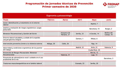 FREMAP presenta el calendario de Jornadas Tecnicas y Talleres Practicos de Prevencion del primer semestre 2020