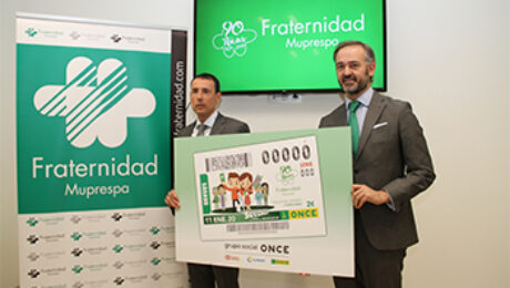 Fraternidad-Muprespa y ONCE presentan un cupon conmemorativo del motivo del 90 aniversario de la Mutua