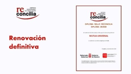Fuente: MUTUA UNIVERSAL La Entidad ha obtenido la renovacion de tres distintivos relacionados con la conciliacion y la igualdad: el sello «Reconcilia», otorgado por el Gobierno de Navarra, y los distintivos «Alcobendas Concilia en Igualdad 2020» y «Empresas Comprometidas con la Igualdad 2020», concedidos por el Ayuntamiento de Alcobendas. Mutua Universal, mutua colaboradora con la