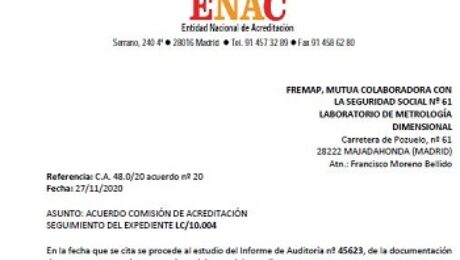ENAC renueva la acreditacion del Laboratorio de Metrologia Dimensional de FREMAP