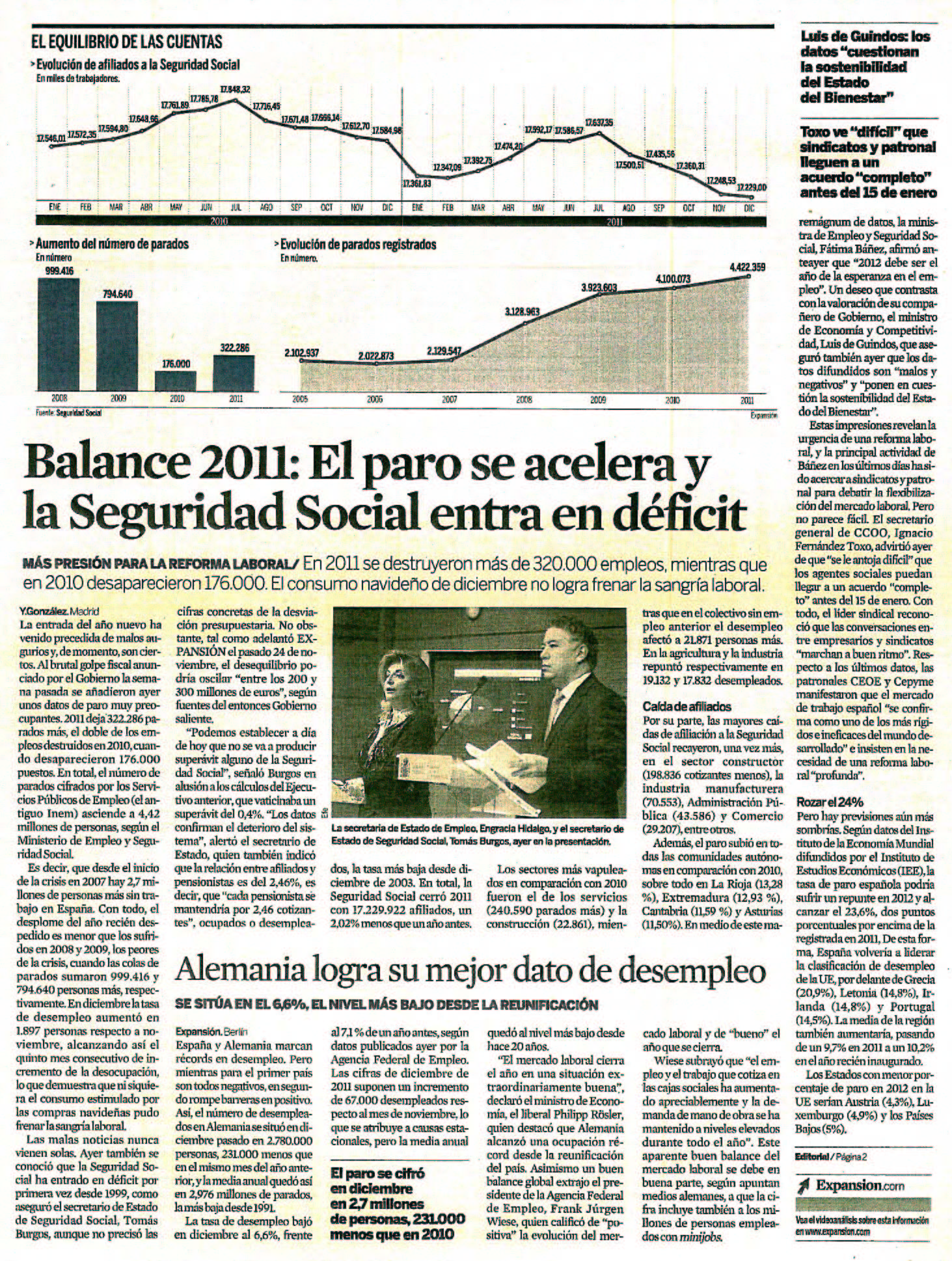 Balance 2011: El paro se acelera y la Seguridad Social entra en deficit.