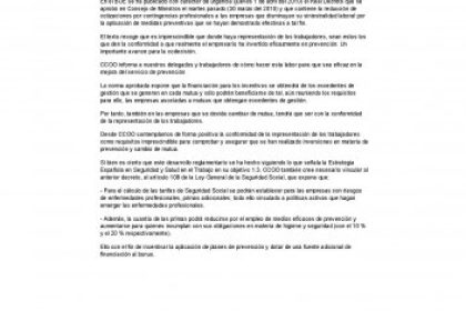 Desde CCOO contemplamos de forma positiva la conformidad de la representacion de los trabajadores como requisitos imprescindible para comprobar y asegurar que se han realizado inversiones en materia de prevencion y cambio de mutua.