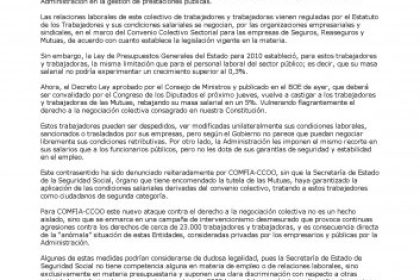 Este contrasentido ha sido denunciado reiteradamente por COMFIA-CCOO, sin que la Secretaría de Estado de la Seguridad Social, órgano que tiene encomendado la tutela de las Mutuas, haya garantizado la aplicación de las condiciones salariales derivadas del convenio colectivo, tratando a estos trabajadores como ciudadanos de segunda categoría.