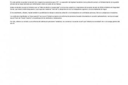 En este sentido recuerdan la decisión de congelar las pensiones para 2011, la supresión del régimen transitorio de la jubilación parcial o el fortalecimiento de la gestión privada de las bajas laborales por enfermedad común por parte de las mutuas.