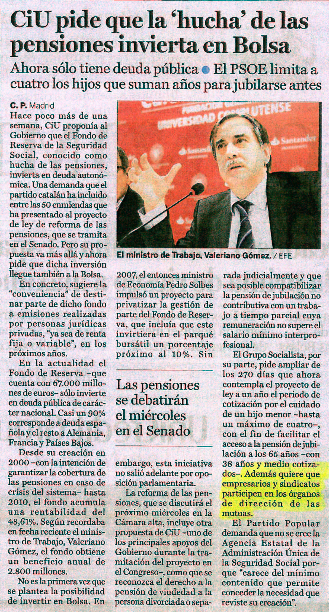 El PSOE limita a cuatro los hijos que suman anos para jubilarse antes.
