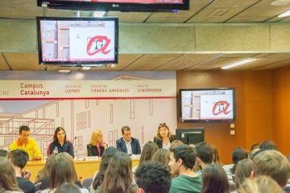 La supervisora de planta de Clínica Activa Mutua, Teresa Escoda describió, el 13 de mayo, las necesidades laborales que precisa una mutua colaboradora de la Seguridad Social relacionada con el colectivo profesional de enfermería, en una jornada de inserción laboral que organizó la Facultad de Enfermería de la Universidad Rovira i Virgili (URV) de Tarragona, con motivo del día internacional de esta profesión.