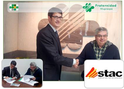 Seguidamente, el Sindicat de Taxi de Catalunya formalizo un acuerdo de colaboracion en materia de prevencion de riesgos laborales con el Servicio de Prevencion de Fraternidad Muprespa.