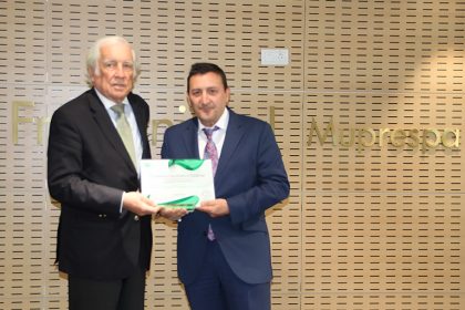 José Luis Zurro, jefe de prevención de riesgos laborales en los Colegios El Valle, recibió el galardón de manos de Carlos Espinosa de los Monteros, presidente de Fraternidad-Muprespa, en un acto de entrega que tuvo lugar en el Hospital Fraternidad-Muprespa Habana el 23 de abril.